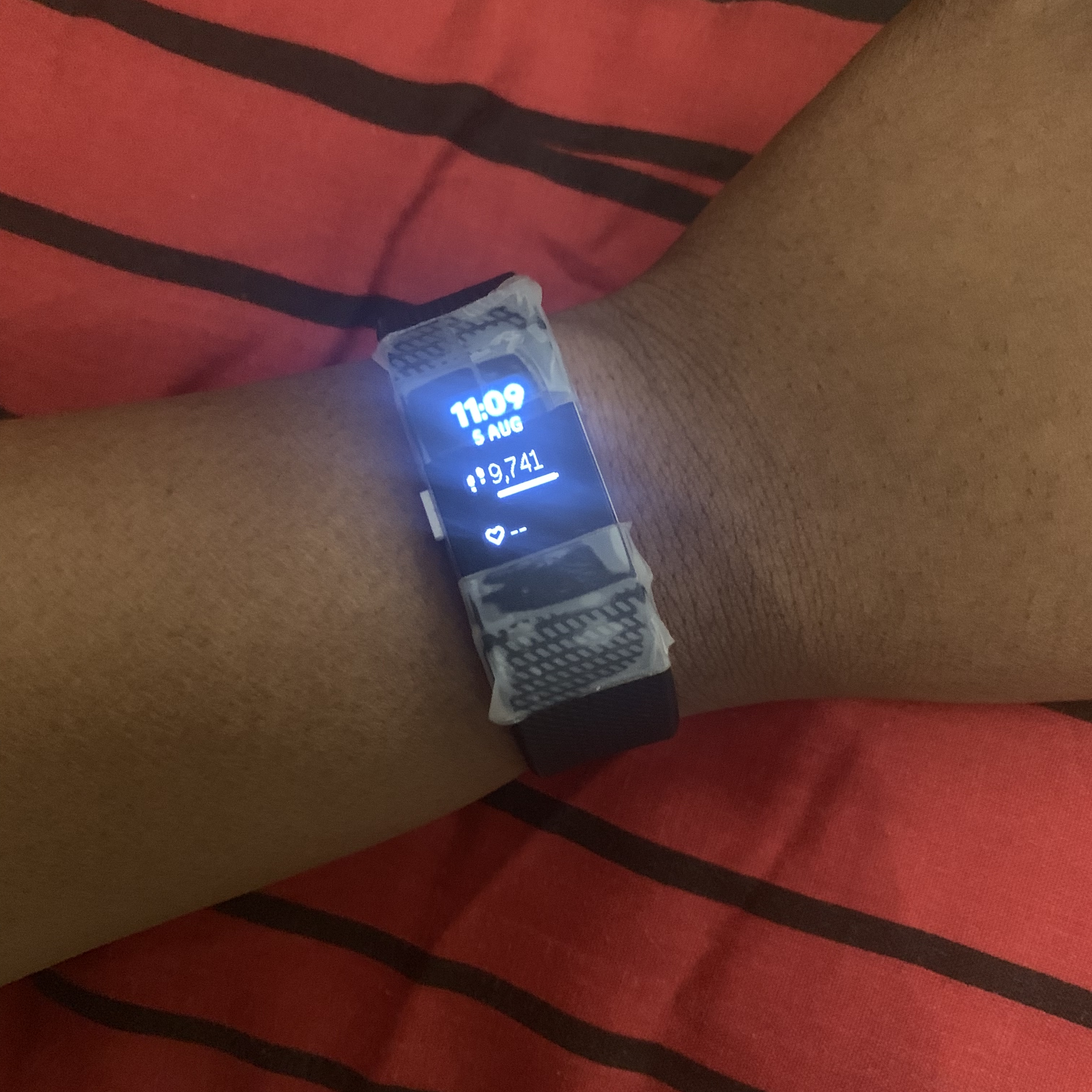look with sticky tape holding my FitBit together.