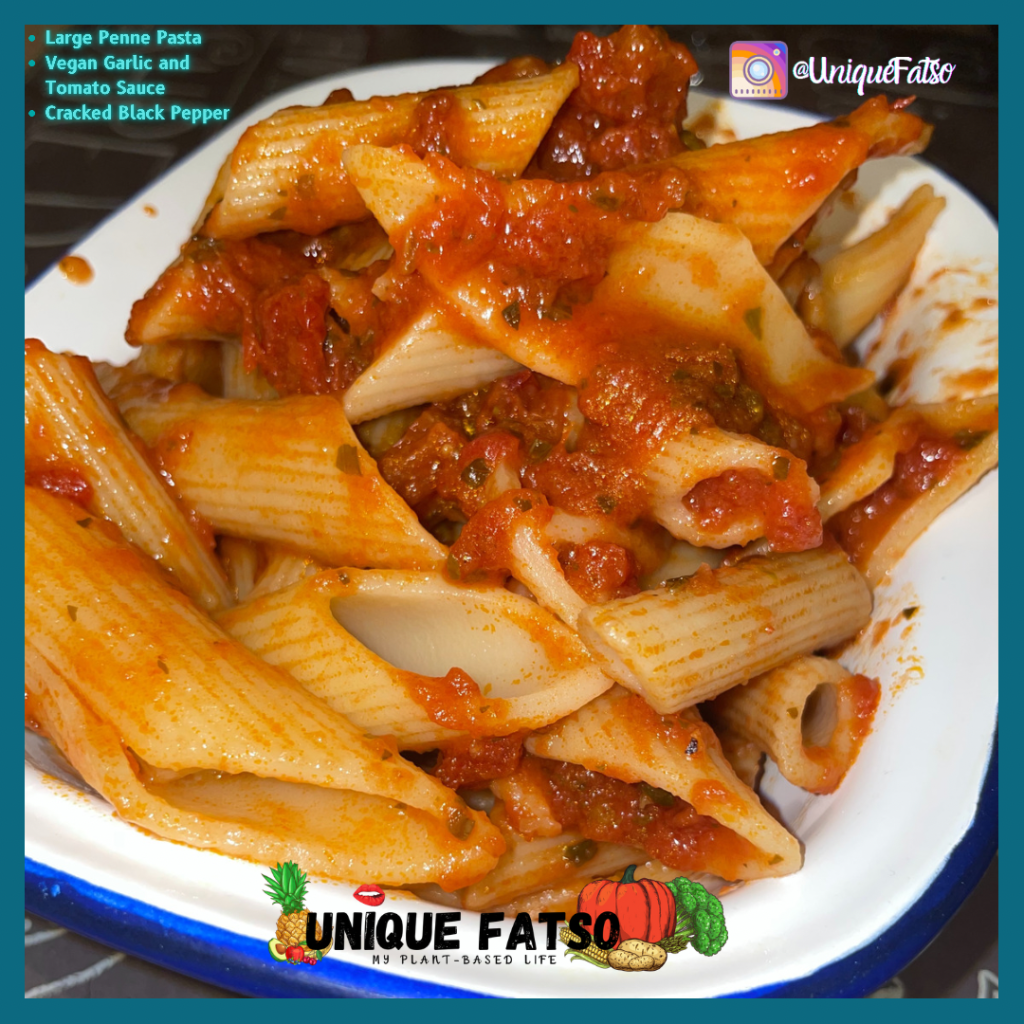 Food by Fatso: Large Penne Pasta, Garlic and Tomato Sauce with Cracked Black Pepper
